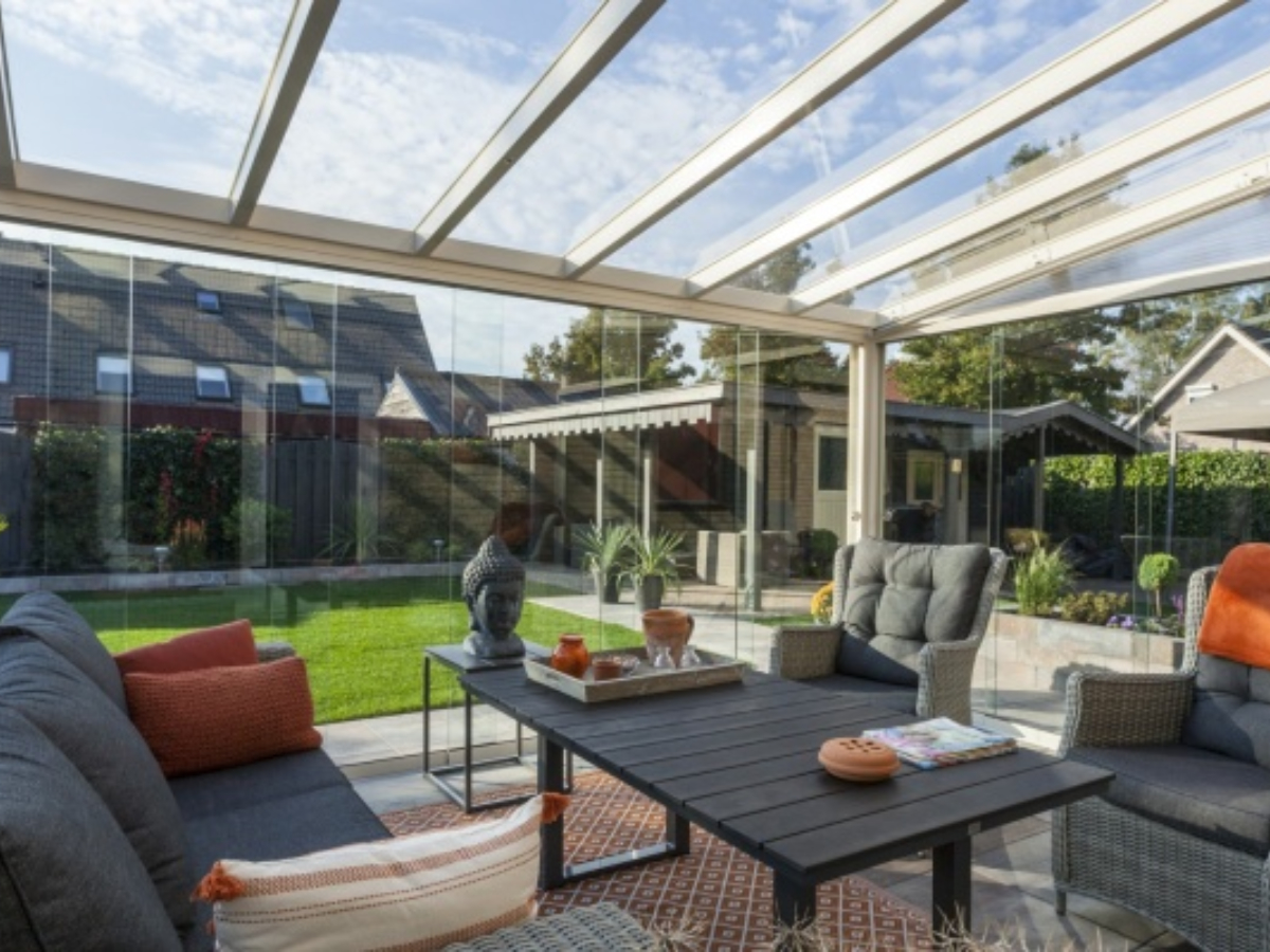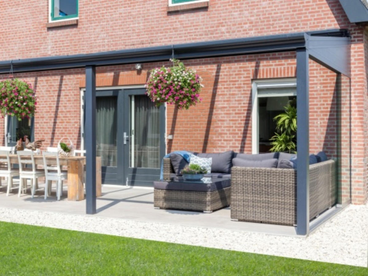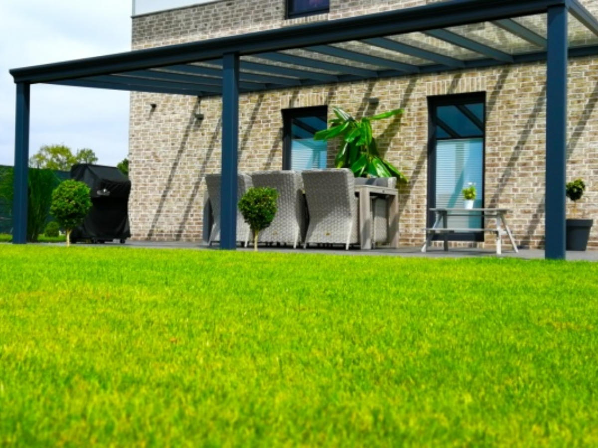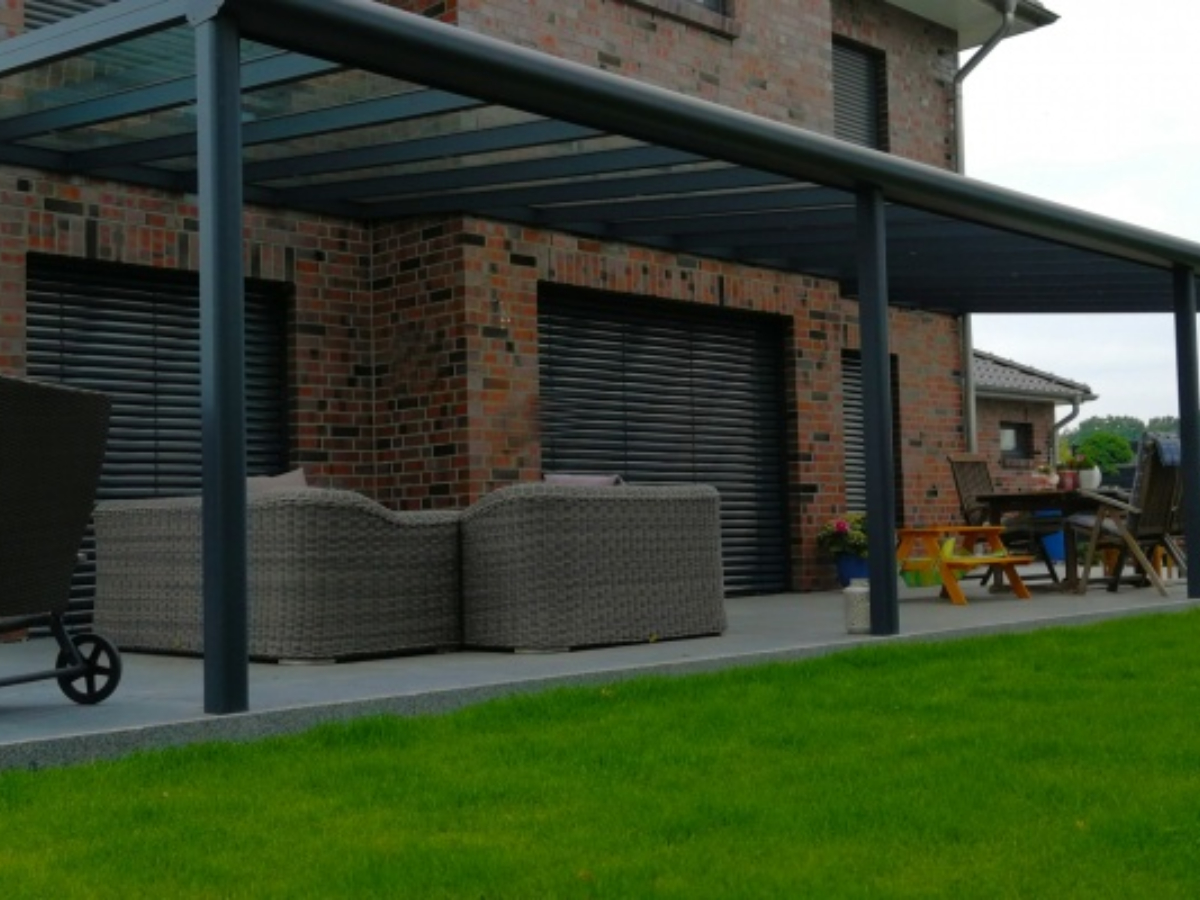 Diese Terrassenüberdachung ist in den