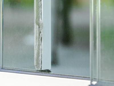 Glaswände beim Verschieben. Die Bürsten
